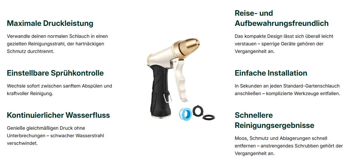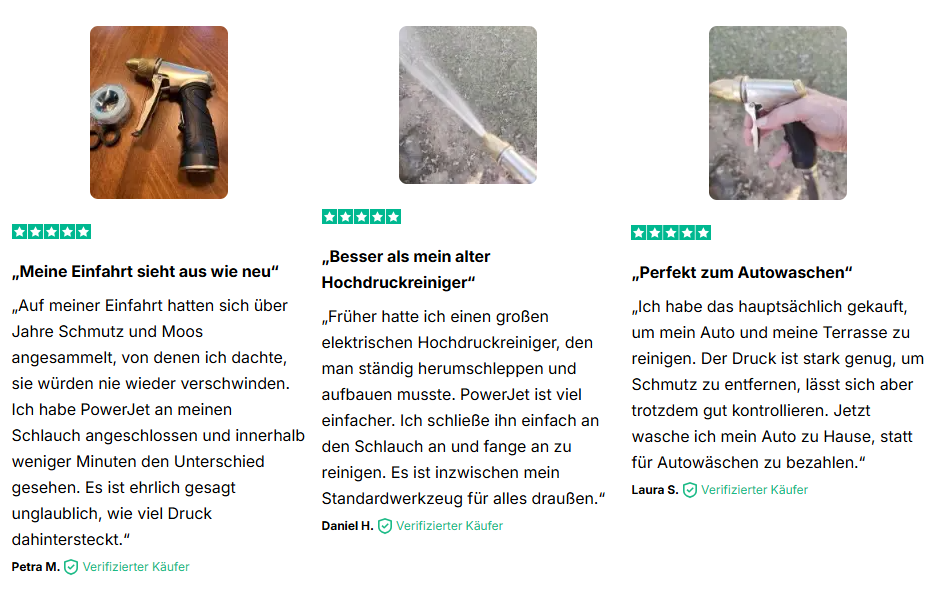 PowerJet löst dieses Problem sofort, indem es deinen normalen Gartenschlauch in einen kraftvollen Hochdruckreiniger verwandelt.